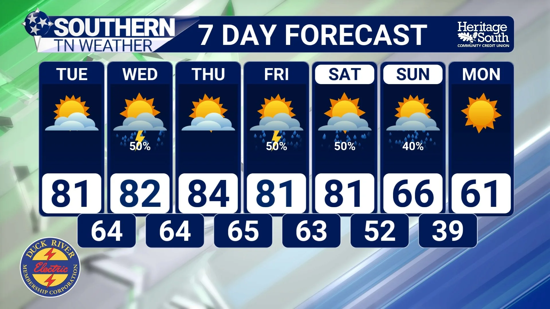 📰 Reminder: The Southern Tennessee Weather Blog, presented by Heritage South Community Credit Union, is updated Monday through Friday with fresh, locally tailored forecasts you can trust.